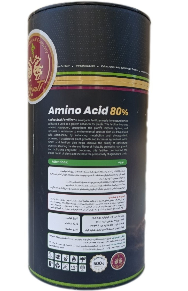 کیفیت بالای مواد اولیه استفاده شده در کود آمینو اسید 80 درصد از دیگر دلایل موفقیت این محصول است. استفاده از ترکیبات طبیعی و اصول علمی روز، آن را به گزینهای مطمئن برای کشاورزان تبدیل کرده است که به دنبال افزایش بهرهوری و حفظ سلامت محیط زیست میباشند.